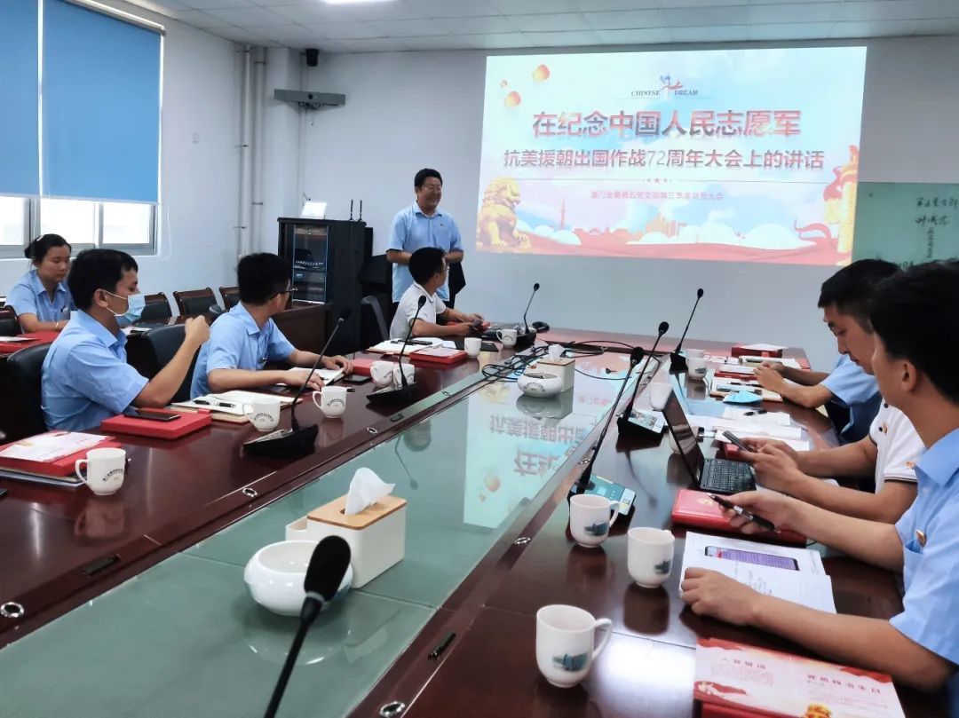 最后,由组织委员庄建新带领大家进行党课学习,集中学习了习总书记在在纪念中国人民志愿军抗美援朝出国作战72周年大会上的讲话。伟大的抗美援朝战争,抵御了帝国主义侵略扩张,捍卫了新中国安全,保卫了中国人民和平生活,稳定了朝鲜半岛局势,维护了亚洲和世界和平。抗美援朝战争锻造形成的伟大抗美援朝精神,是弥足珍贵的精神财富。在新时代,作为党员的我们,要继承和弘扬伟大抗美援朝精神,为实现中华民族伟大复兴而奋斗!