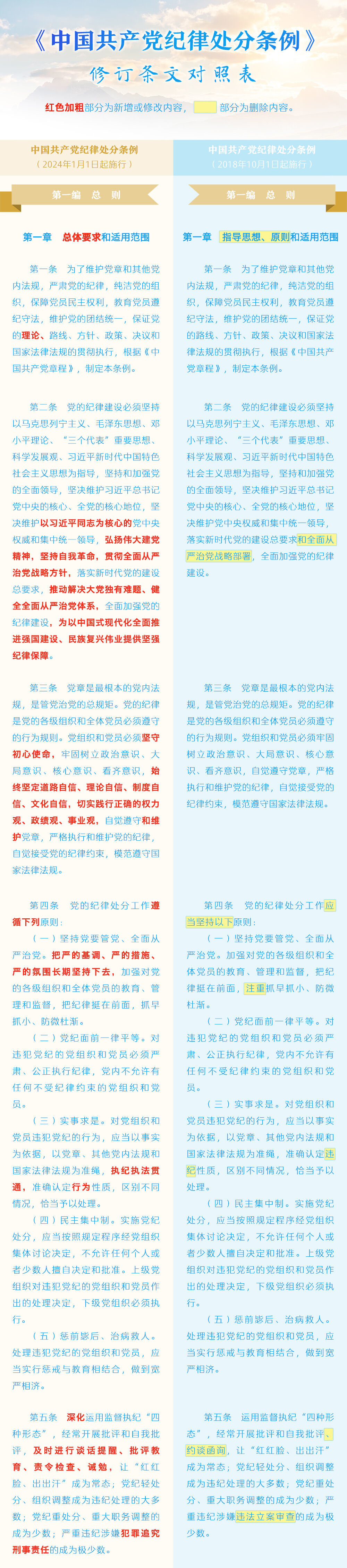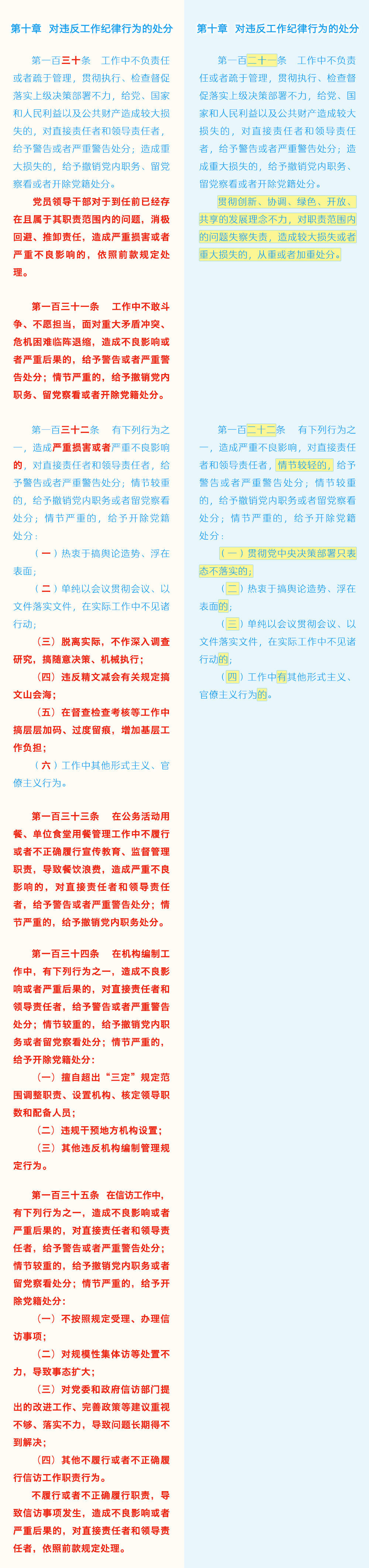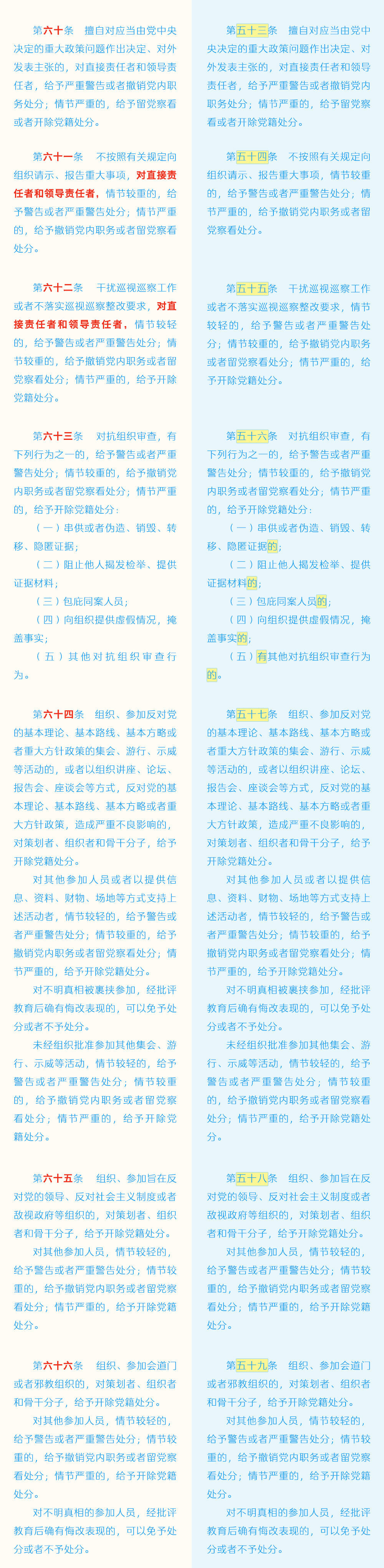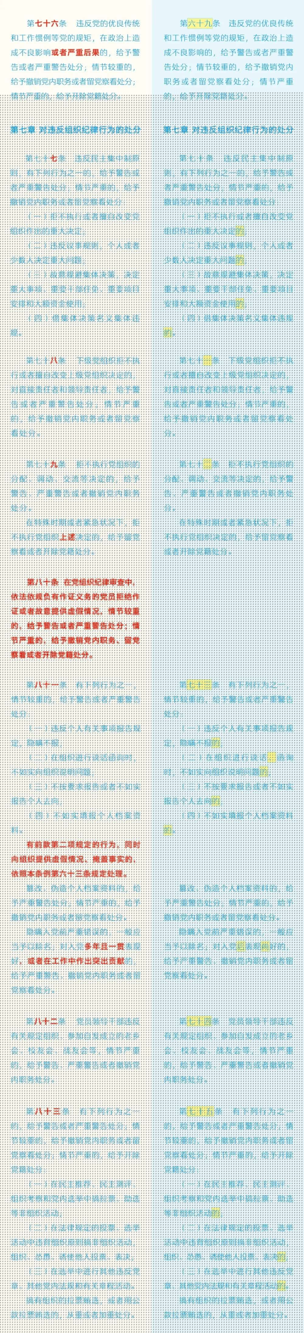 《中国共产党纪律处分条例》修订条文对照表