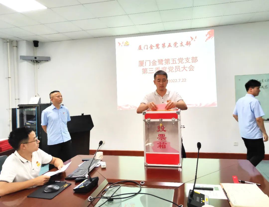 7月22日上午,厦门金鹭第五党支部在同安厂区召开了第二季度党员大会,大会由支部书记代平主持,支部党员及入党积极分子参加了此次会议。