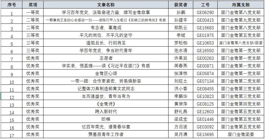 “百年党史青年说、金鹭故事工匠说”征文评选结果