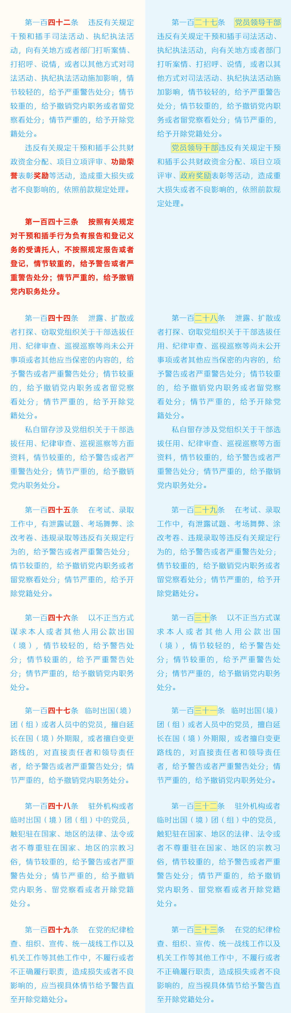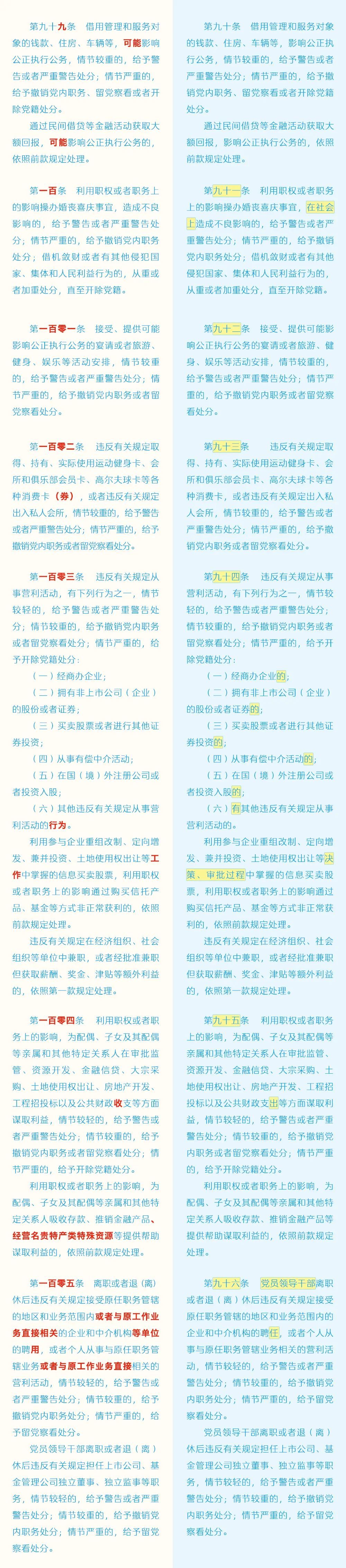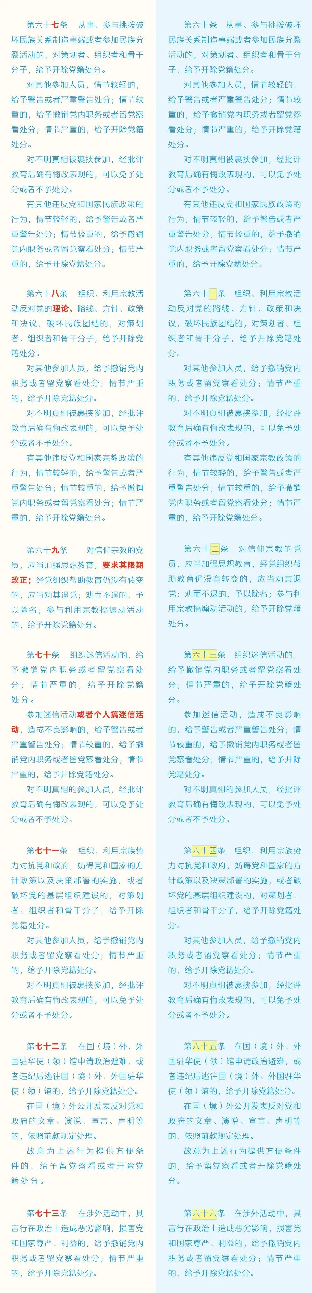 《中国共产党纪律处分条例》修订条文对照表