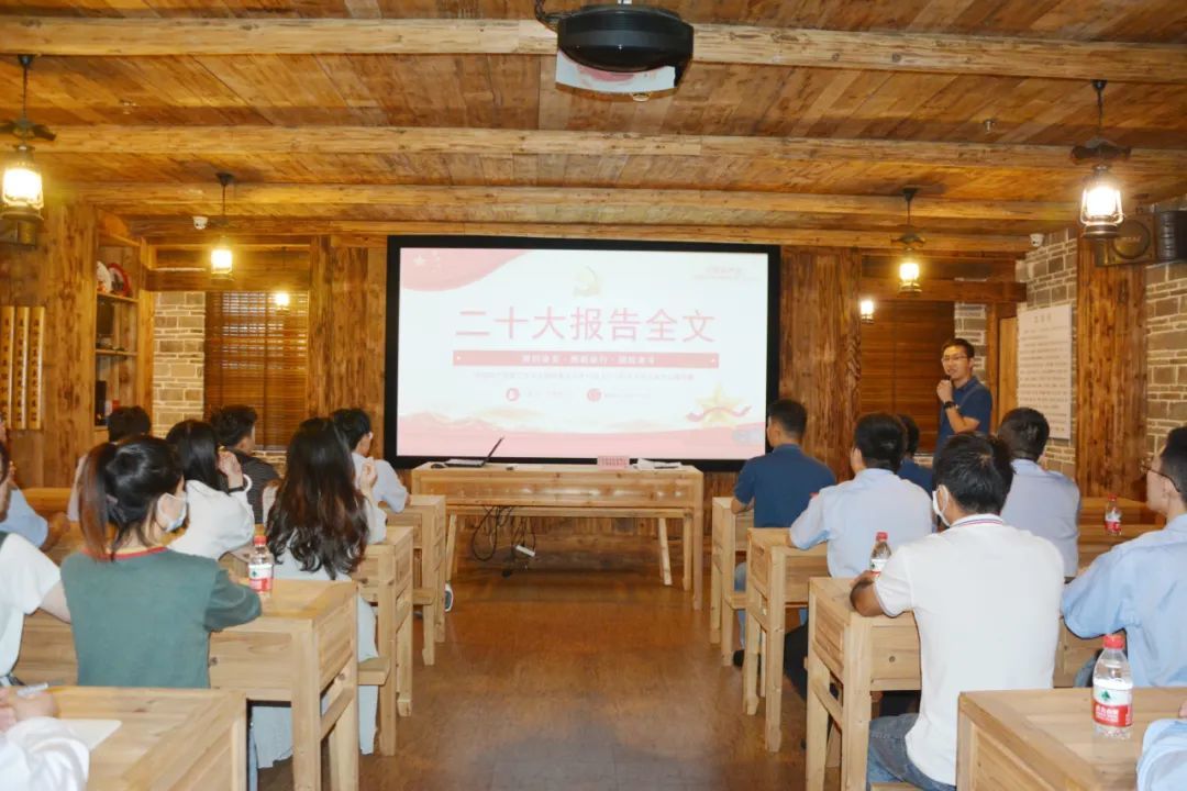 在《厦门龙江书院》红色课堂里,第九党支部书记王明胜同志为大家上了一堂第四季度不同寻常的党课,本次党课的主题是《中国共产党第二十次全国代表大会精神学习解读》,他带领大家对近期召开的党的二十大报告全文架构与主要内容进行全面分析,将二十大报告中的十五个章节结合自身理解进行分享,通过观看二十大报告视频,他对青年一代提出殷切希望,青年强,则国家强。希望各位同志要立志做有理想、敢担当、能吃苦、肯奋斗的新时代好青年,做好自己的本职工作,让青春在全面建设社会主义现代化国家的火热实践中绽放绚丽之花。